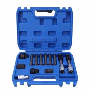 This 13-piece alternator freewheel pulley removal socket bit set is an essential garage tool for motorcycle and automobile repairs. Designed to remove the alternator clutch pulley with ease, this kit includes various sockets and bits to fit different vehicle models
