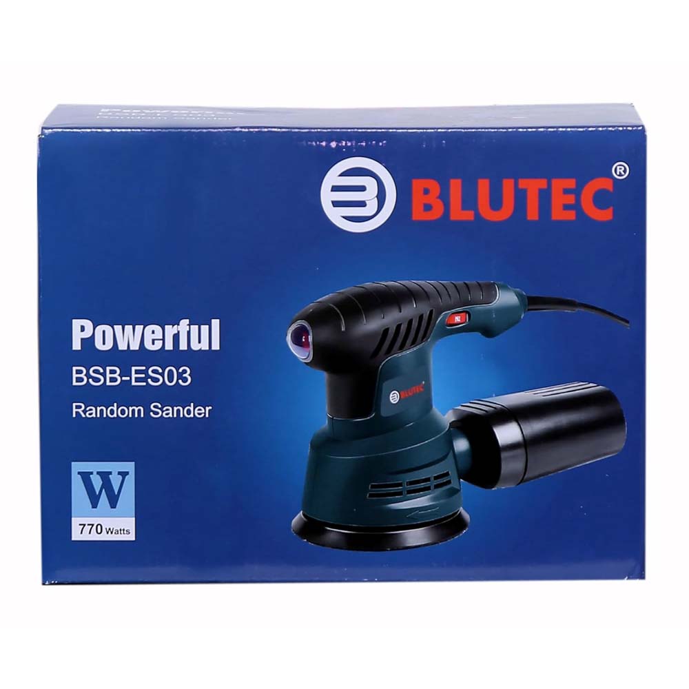 Blutec random orbital sander 125mm, BSB-ES03, 770W, 5000-13000rpm, 220V~50hz, 6 Variable Speed, Dust box Attachment, Auto dust collector, Professionals