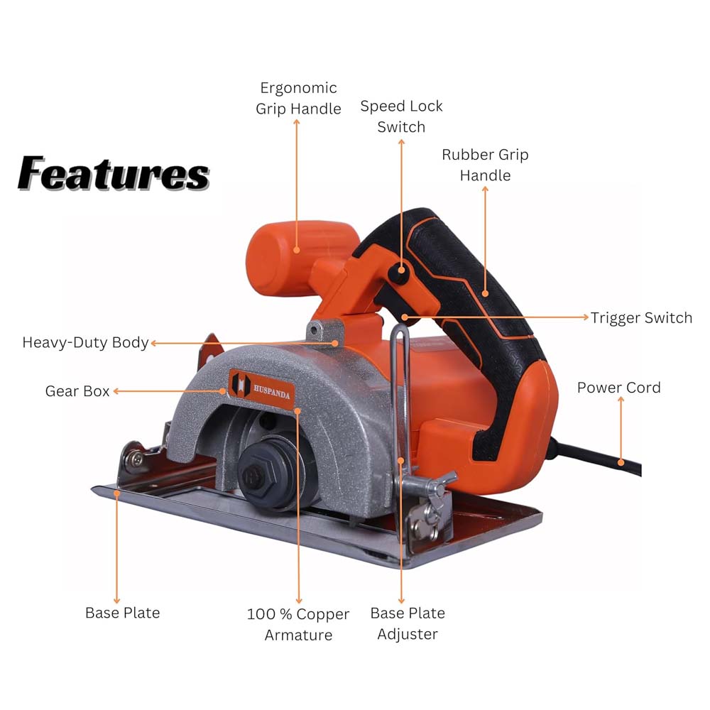 - Powerful Features – The HUSPANDA Marble Cutter is packed with powerful features, including a 1700W motor that provides exceptional cutting strength. With a no-load speed of 11,000 RPM and a 125mm blade diameter, it’s capable of making precise, efficient cuts through tough materials like marble and granite.