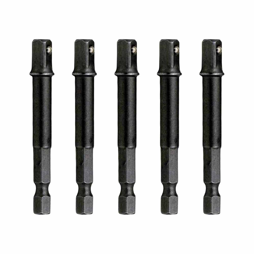 5 Pack 1/4 inch Square Socket Adapter Bit Set, Impact Driver Power Bits for Automotive DIY 1/4 Hex Shank